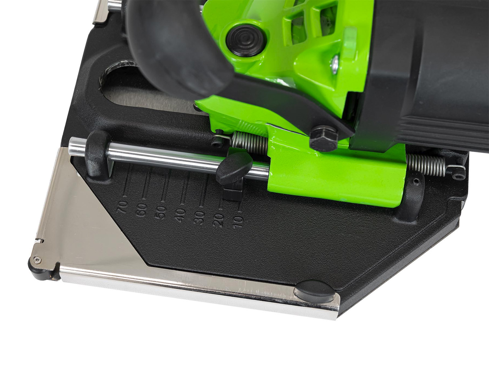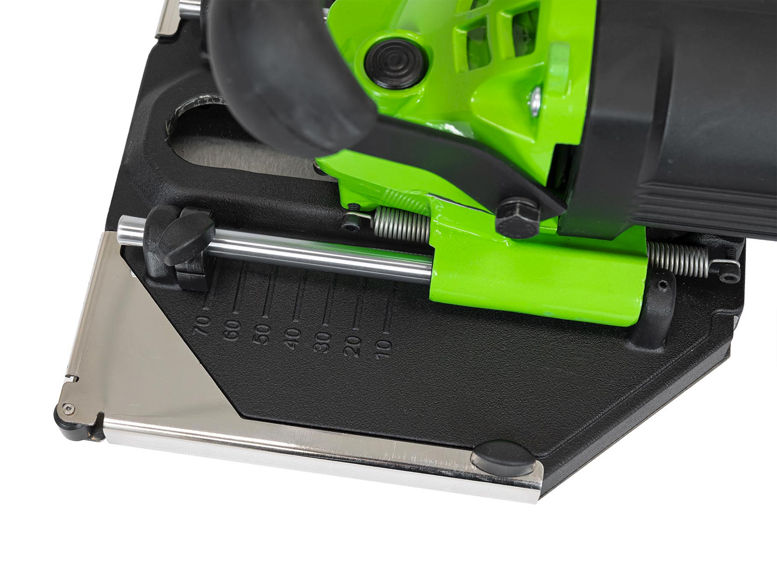 Eckschnitt oder Längsschnitt durch werkzeugloses 180°-Drehen des Bodenblechs - Stufenlose Schnitttiefenbegrenzung für kontrollierte und exakte Schnitte