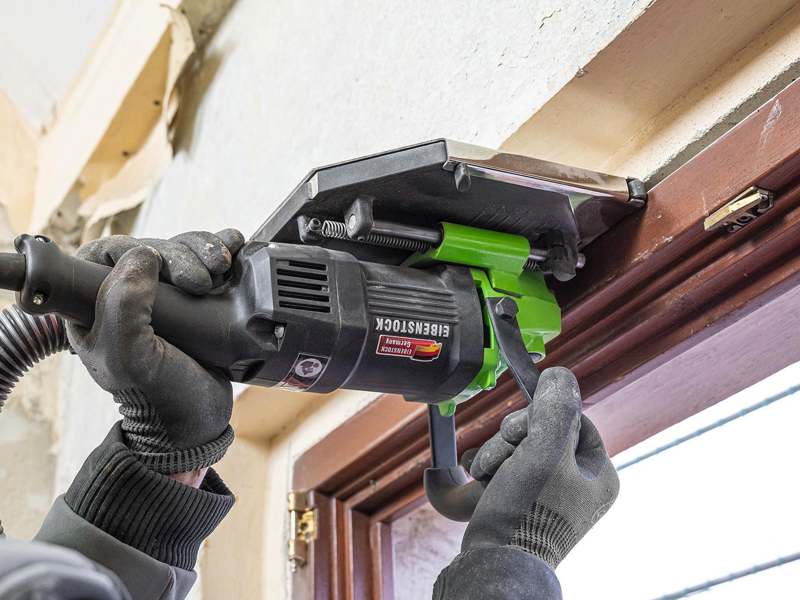 Leistungstarke und vielseitige Elektrosäge, speziell für die präzise und staubarme Sanierung von Fenstern und Türen entwickelt.