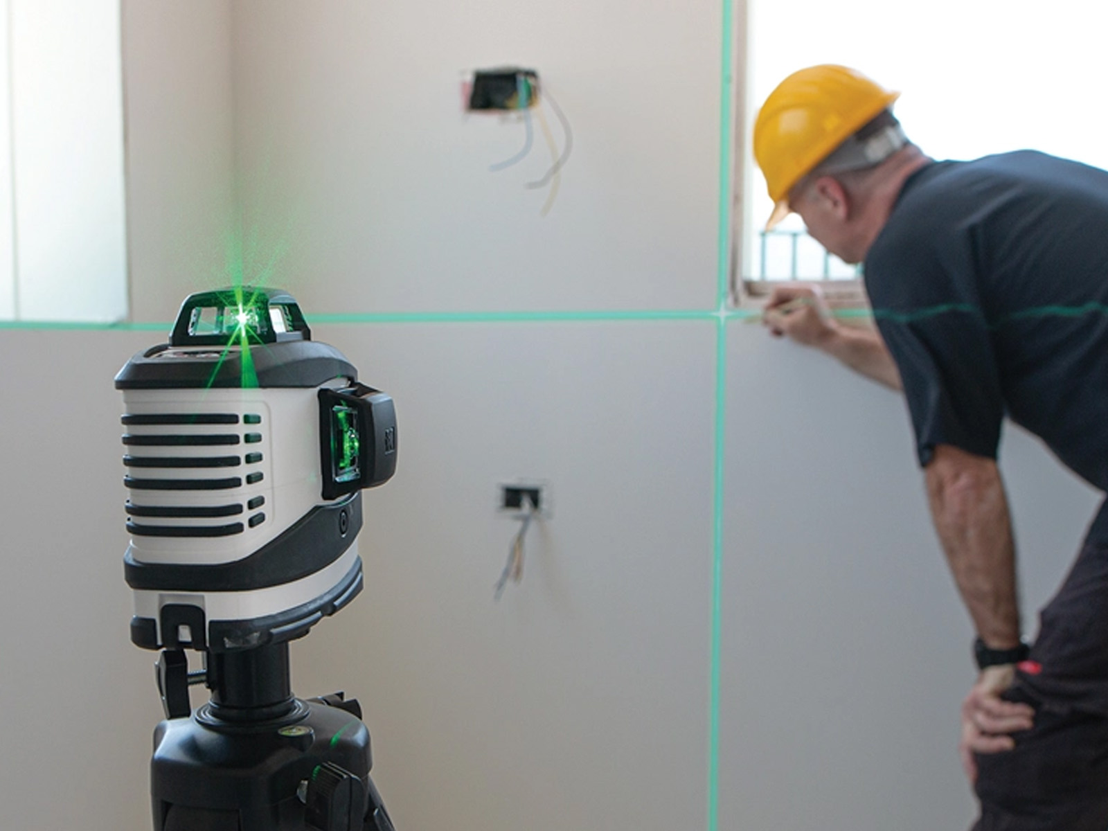 Mit den drei 360°-Laserlinien lassen sich Wandflächen, Böden und Decken gleichzeitig erfassen, wodurch Arbeitsabläufe deutlich effizienter werden. Der grüne Laser bietet bessere Sichtbarkeit im Vergleich zu roten Linien. Mit dem Pulsmodus kann der Einsatzbereich auch im Freien mit Empfängern bis zu 70 m erweitert werden. Durch das robuste Gehäuse und die vielseitige Montageoption ist das Gerät auch auf Baustellen fit für den Alltag.