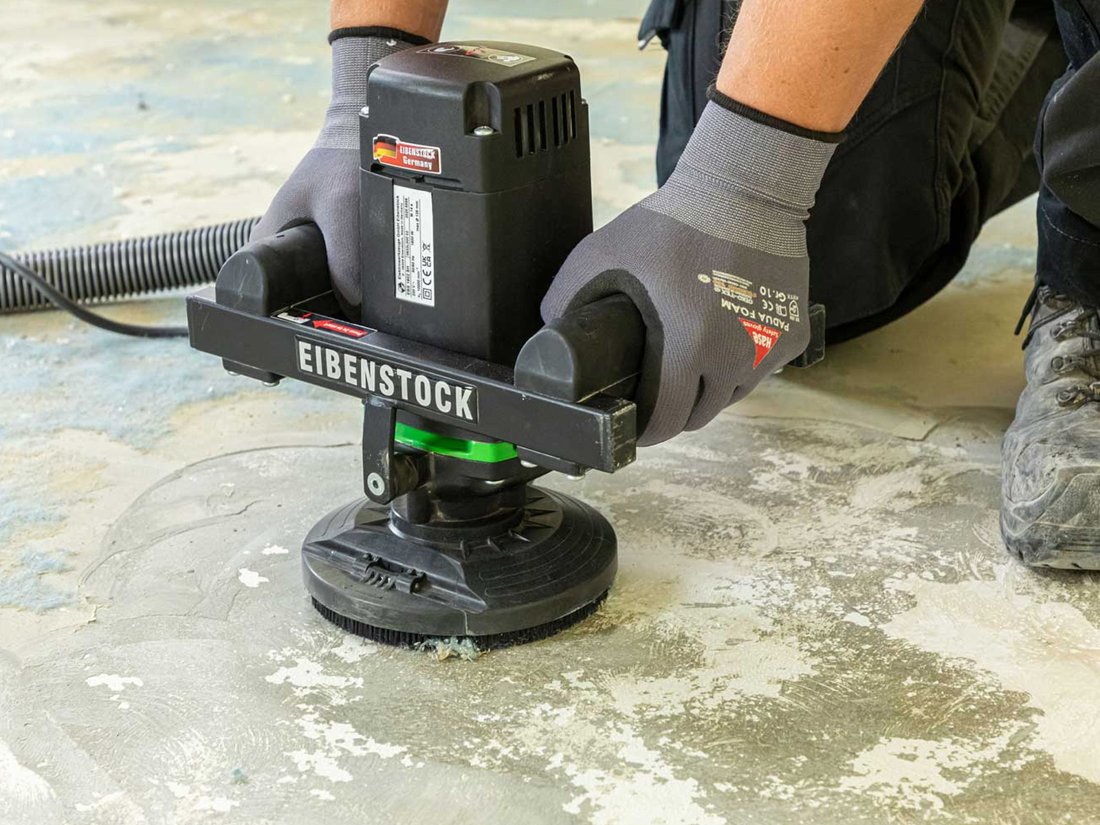 Die integrierte Elektronik mit Sanftanlauf, Überlastabschaltung und Überlastanzeige unterstützt eine kontrollierte Maschinenführung und schützt den Antrieb im Dauerbetrieb. In Verbindung mit abgestimmten Schleiftellern für unterschiedliche mineralische Untergründe geeignet.